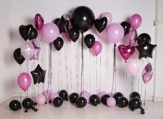 - 20 Latex helium balloons ( 7 pink and 8 black )