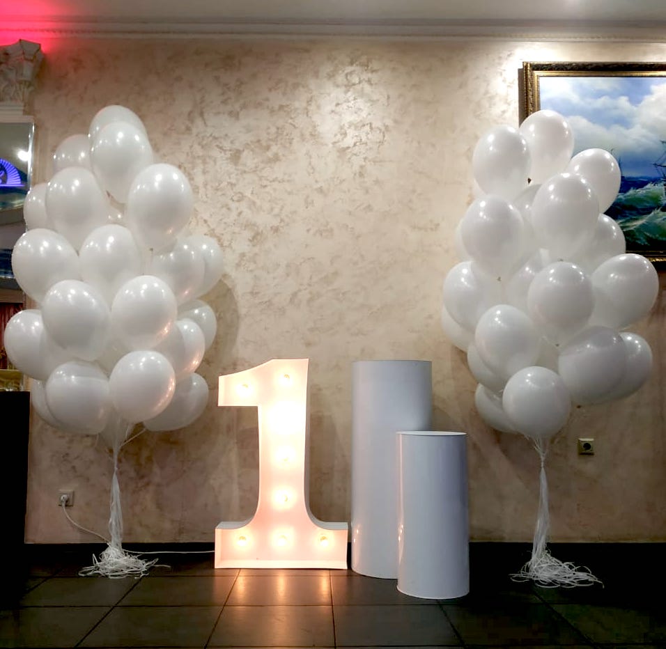 White Balloons Bouquet with LED Number